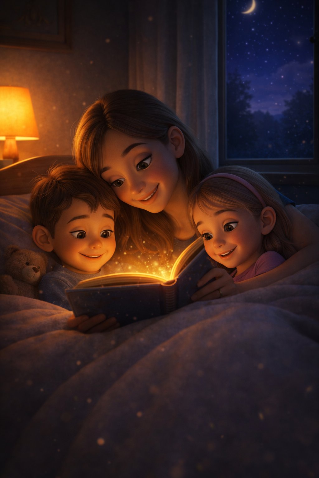 Skapa en personlig godnattsaga på svenska – med barnets namn, favoritthema och en varm röst som hjälper barnet att varva ner. En trygg kvällsrutin som barnet längtar efter.